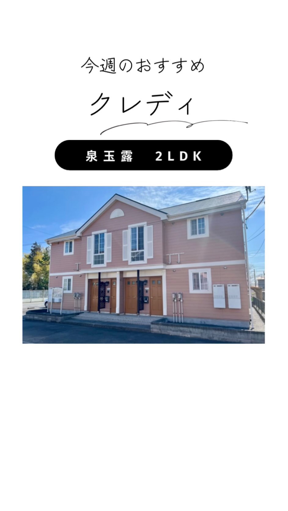 ✨今週のオススメ物件✨ ・クレディ ・泉玉露エリア ・賃料54,000円 《おすすめポイント》 ✳️2F、角部屋 ✳️エアコン付き ✳️常磐泉駅ま...
