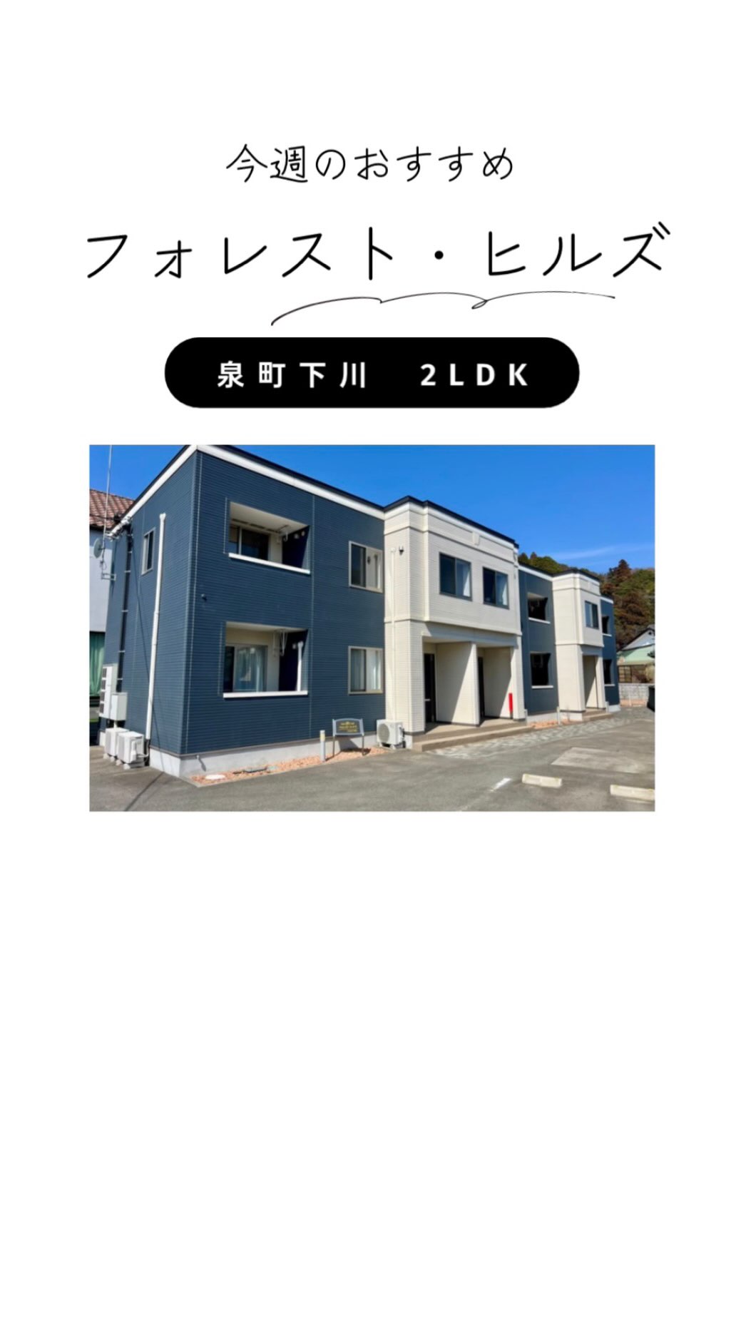 ✨今週のオススメ物件✨ ・フォレスト・ヒルズ ・泉町下川エリア ・賃料61,000円 《おすすめポイント》 ✳️インターネット無料 ✳️エア...