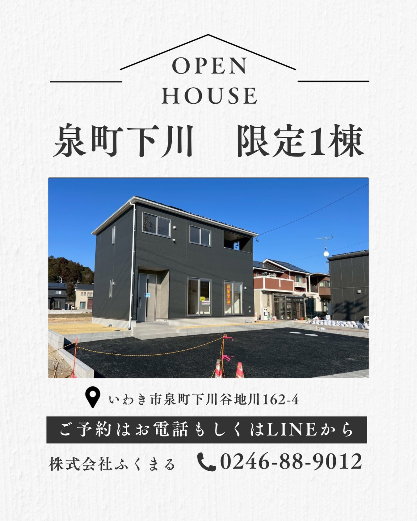 《オープンハウス情報》いわき市泉町下川、限定1棟の新築建売物件です🏠参加無料、予約も簡単🎉お子様連れ大歓迎です!!お休みの...